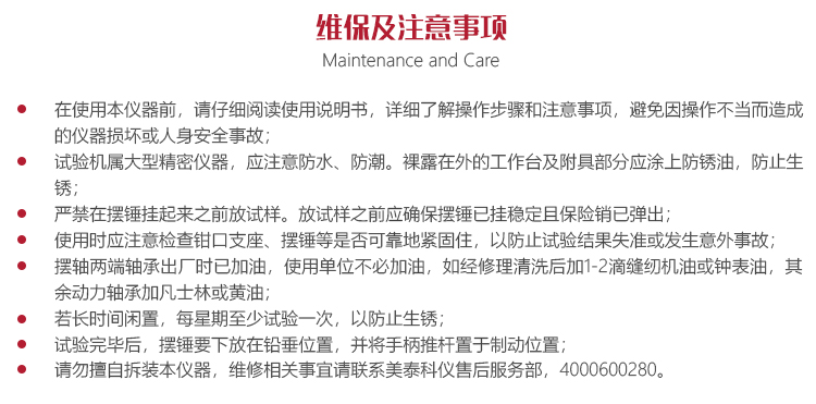 使用時應注意檢查鉗口支座、擺錘等是否可靠地緊固住,以防止試驗結果失準或發生意外事故;