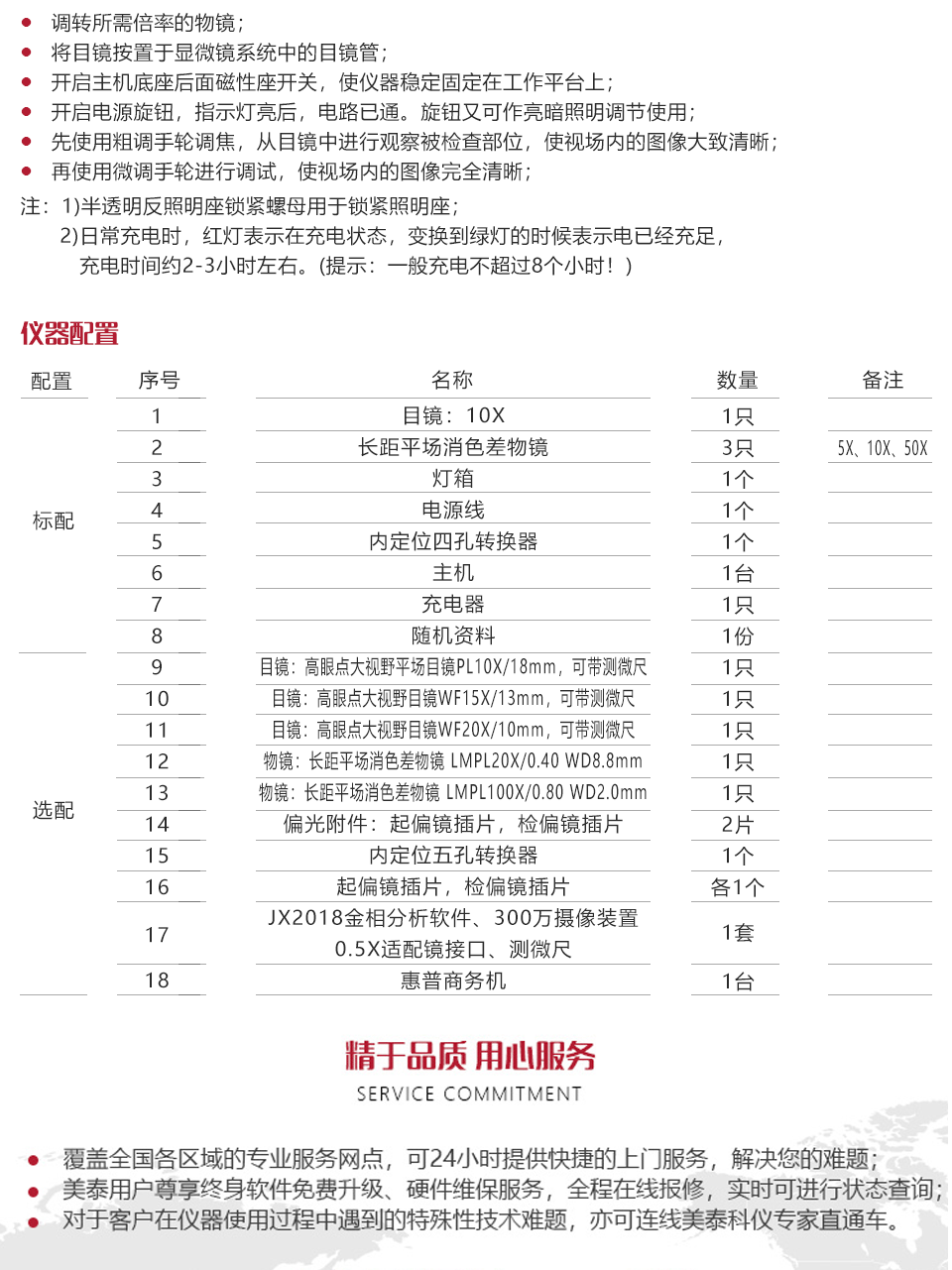 | 調焦機構 | 低位同軸粗微動調焦鏡架,行程25mm,微調精度0.002mm,帶有粗調松緊調節裝置和隨機限位裝置,內置6V30W透射光照明,上下照明切換 |