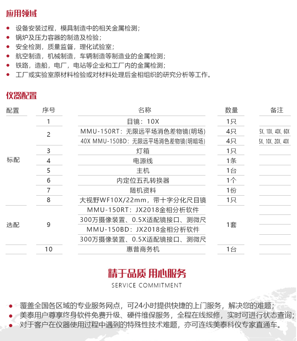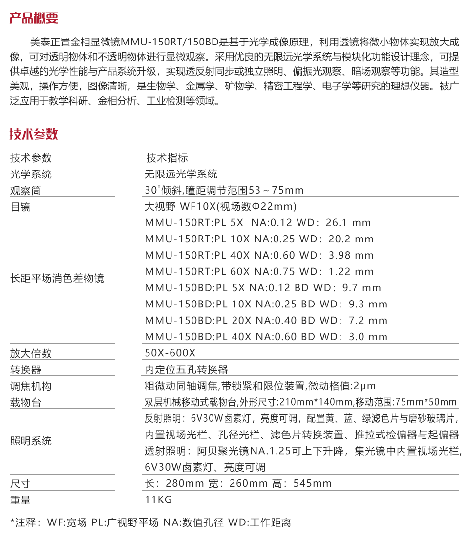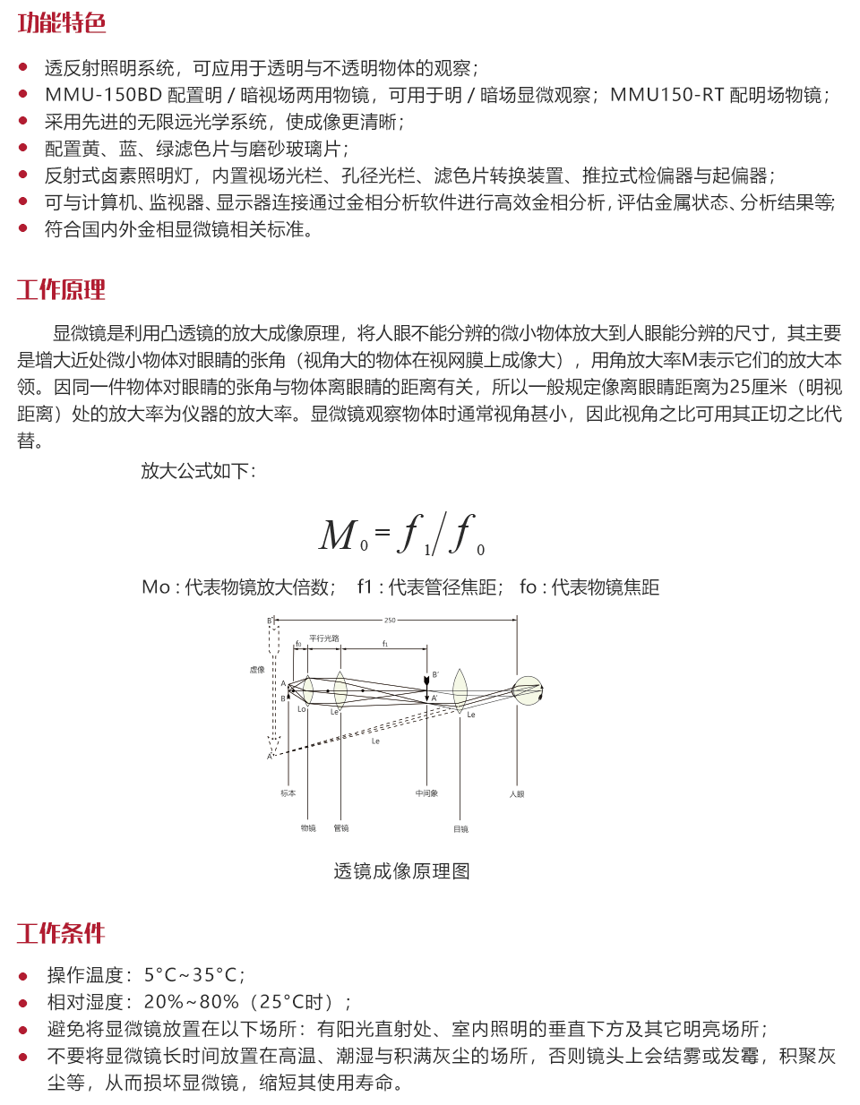 MMU-150BD配置明/暗視場兩用物鏡,可用于明/暗場顯微觀察;MMU150-RT配明場物鏡;
