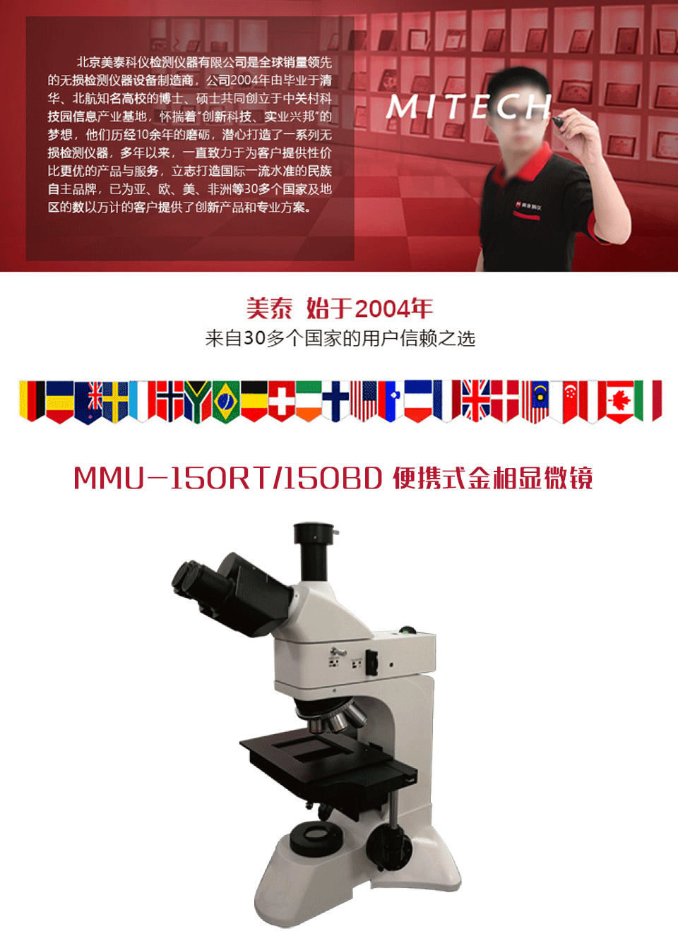 產品概述美泰正置金相顯微鏡MMU-150RT/150BD是基于光學成像原理,利用透鏡將微小物體實現放大成像,可對透明物體和不透明物體進行顯微觀察。采用優良的無限遠光學系統與模塊化功能設計理念,可提供卓越的光學性能與產品系統升級,實現透反射同步或獨立照明、偏振光觀察、暗場觀察等功能。其造型美觀,操作方便,圖像清晰,是生物學、金屬學、礦物學、精密工程學、電子學等研究的理想儀器。被廣泛應用于教學科研、金相分析、工業檢測等領域。
