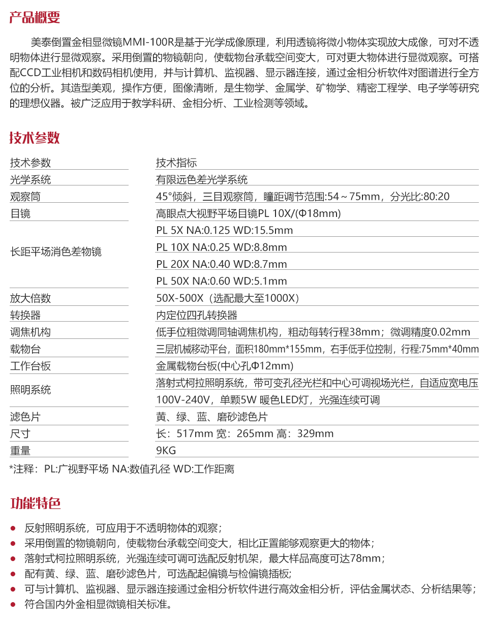 儀器特點反射照明系統,可應用于不透明物體的觀察;