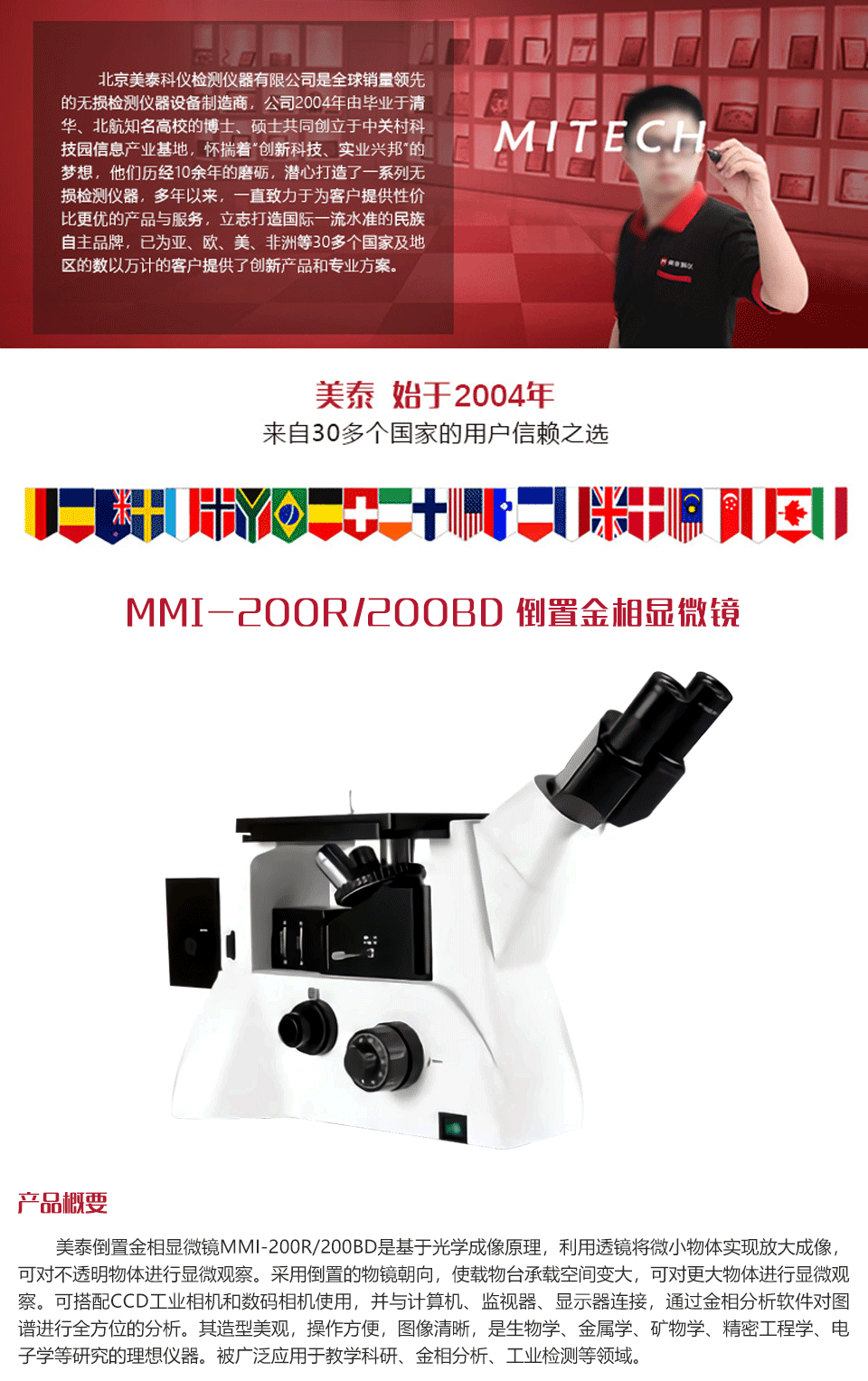 產(chǎn)品概述美泰倒置金相顯微鏡MMI-200R/200BD是基于光學(xué)成像原理,利用透鏡將微小物體實現(xiàn)放大成像,可對不透明物體進行顯微觀察。采用倒置的物鏡朝向,使載物臺承載空間變大,可對更大物體進行顯微觀察。可搭配CCD工業(yè)相機和數(shù)碼相機使用,并與計算機、監(jiān)視器、顯示器連接,通過金相分析軟件對圖譜進行全方位的分析。其造型美觀,操作方便,圖像清晰,是生物學(xué)、金屬學(xué)、礦物學(xué)、精密工程學(xué)、電子學(xué)等研究的理想儀器。被廣泛應(yīng)用于教學(xué)科研、金相分析、工業(yè)檢測等領(lǐng)域。
