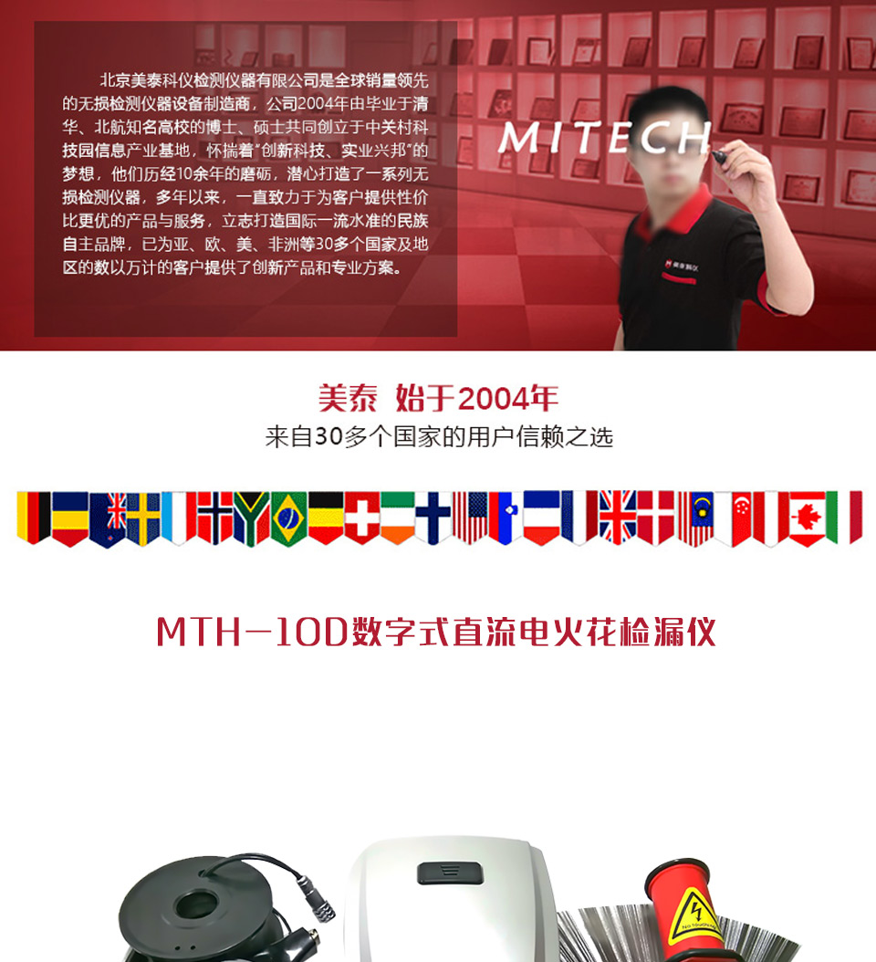 產品概述MTH-10D型數字式直流電火花檢漏儀,基于將脈沖高壓傳導通過防腐層的原理,可快捷檢測防腐層的裂漏狀況,使用中,針對防腐層的質量問題,如遇針孔、氣泡、裂紋,儀器會發出明亮的電火花,同時伴有警示音,操作極為簡便,其獨特的設計依托大容量電池組供電,可擺脫220V電源,適用于工程現場作業。該產品性能穩定可靠,被廣泛地應用于油氣管道、電纜、搪瓷、金屬鑄罐、船體等金屬表面防腐絕緣層的施工質量及老化腐蝕程度監測,是化工、石油、橡膠行業必備的專用檢測設備。
