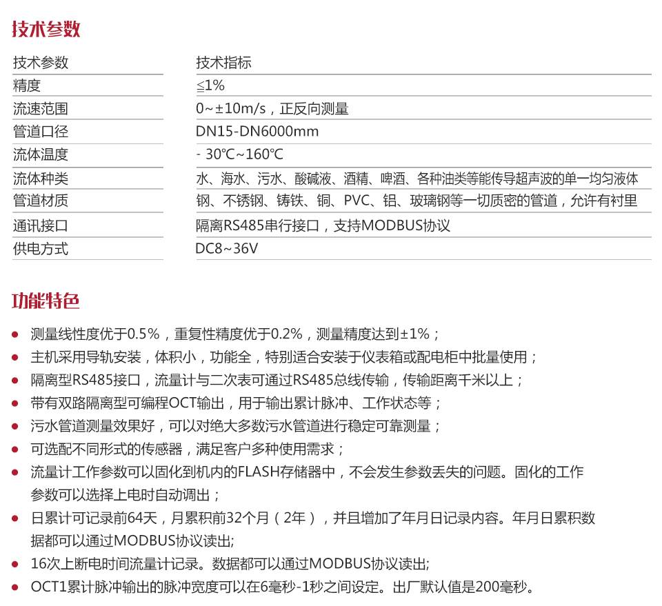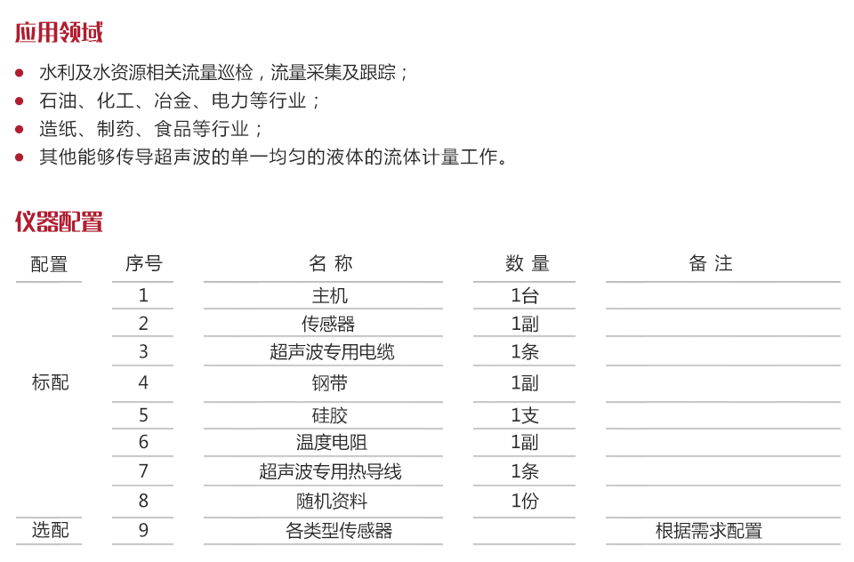 | 流體種類 | 水、海水、污水、酸堿液、酒精、啤酒、各種油類等能傳導超聲波的單一均勻液體 |