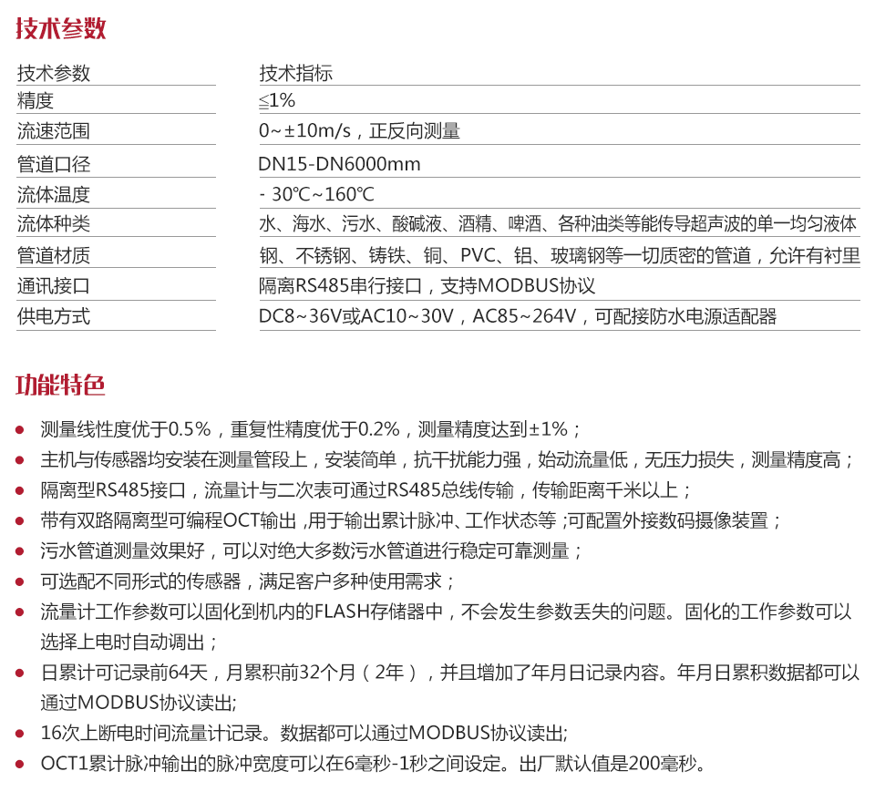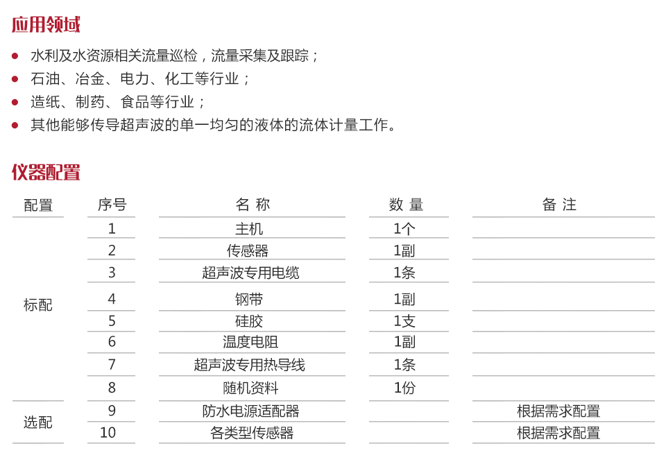 | 流體種類 | 水、海水、污水、酸堿液、酒精、啤酒、各種油類等能傳導超聲波的單一均勻液體 |