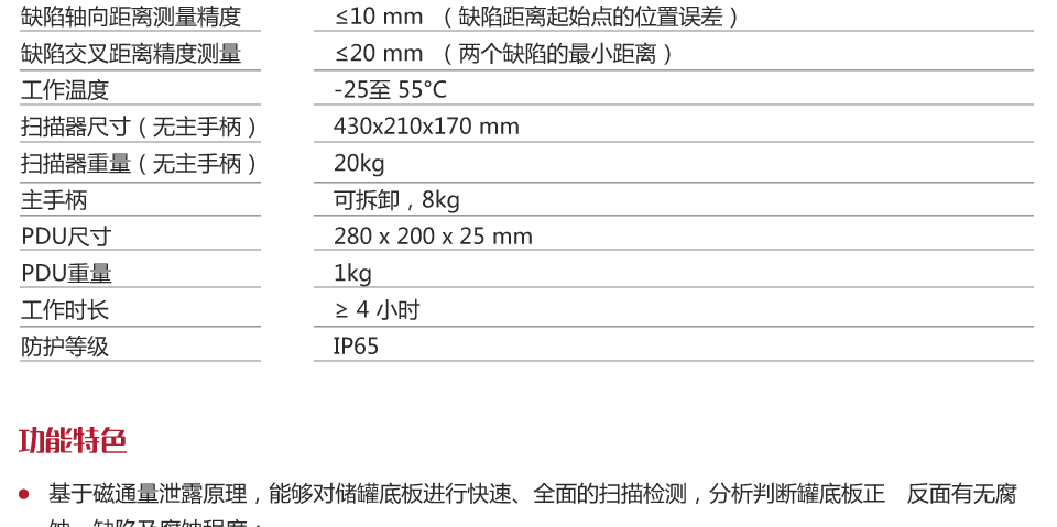 | 缺陷軸向距離測(cè)量精度 | ≤10 mm (缺陷距離起始點(diǎn)的位置誤差) |