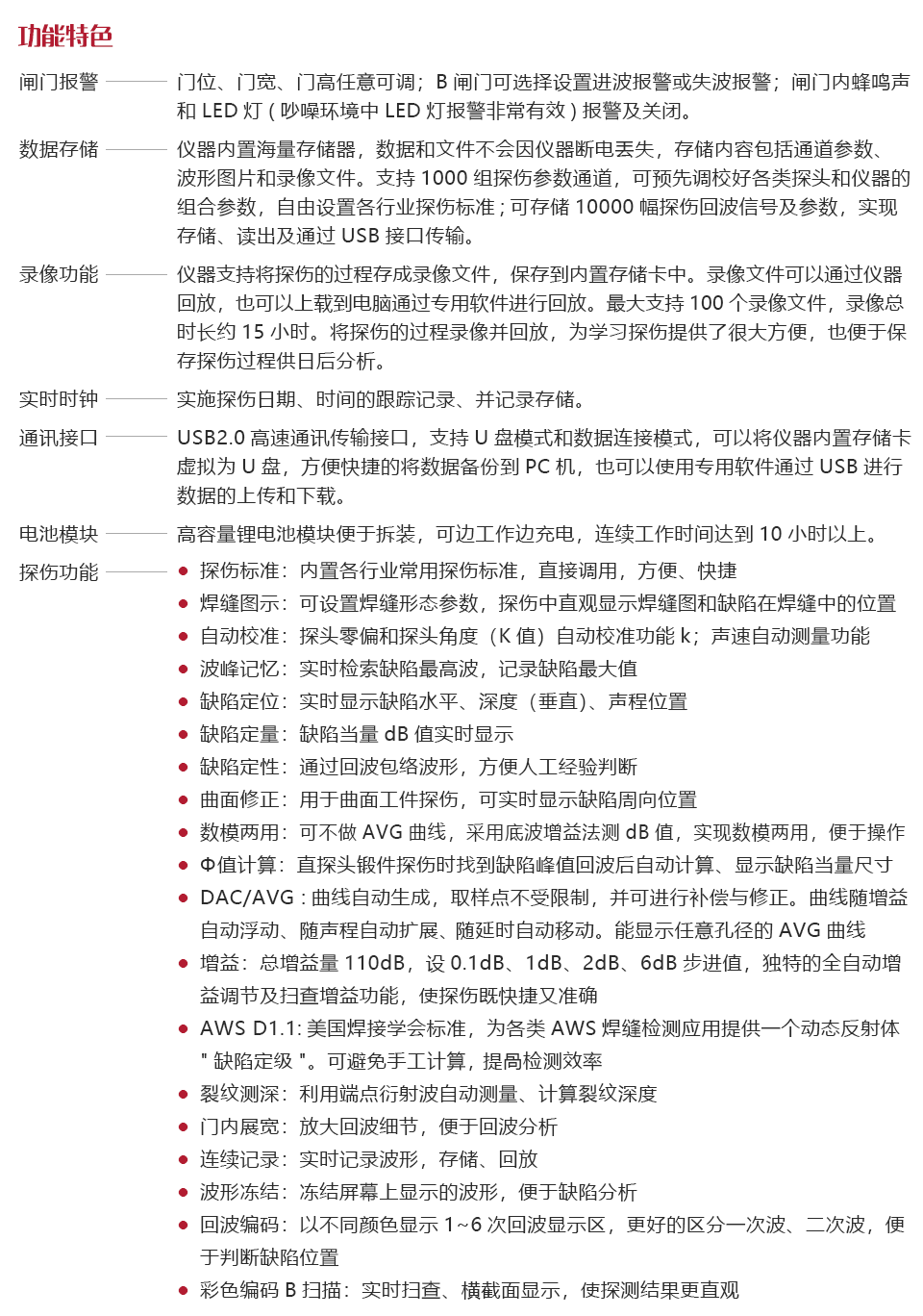 1000組探傷參數通道,可存儲10000幅探傷回波信號及參數;USB2.0高速通訊傳輸接口