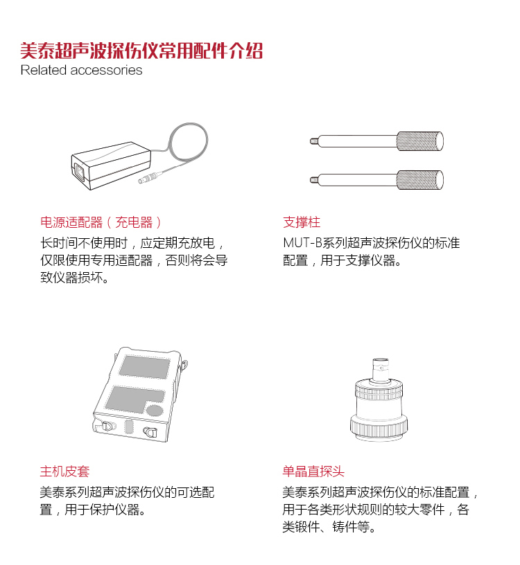 | 美泰超聲波探傷儀主機皮套長27.5cm, 寬17cm,高8cm,用于保護儀器,內置背帶,可根據需要自行調節。 | |