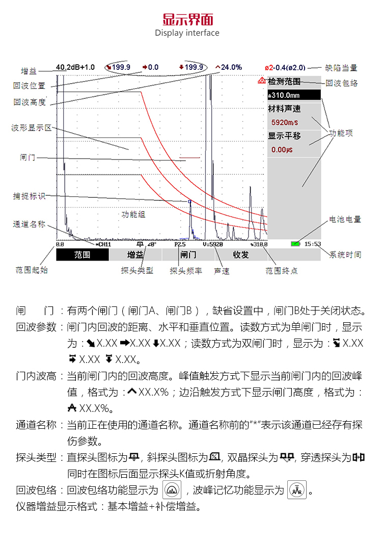 | 定位 | 實時顯示缺陷水平、深度(垂直)、聲程位置 |