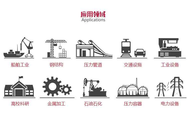 功能用途本儀器能夠廣泛地應用在制造業、鋼鐵冶金業、金屬加工業、化工業等需要缺陷檢測和質量控制的領域,也廣泛應用于航空航天、鐵路交通、鍋爐壓力容器等領域的在役安全檢查與壽命評估。