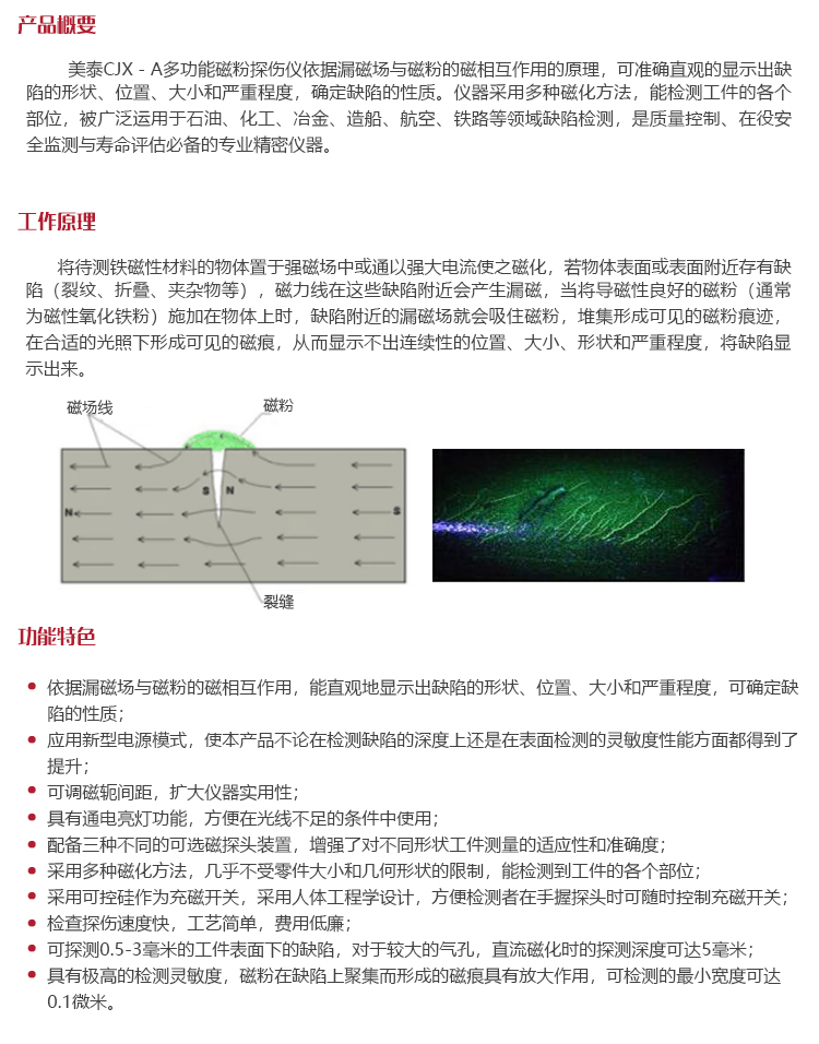 ?應用新型電源模式,使本產(chǎn)品不論在檢測缺陷的深度上還是在表面檢測的靈敏度性能方面都得到了提升;