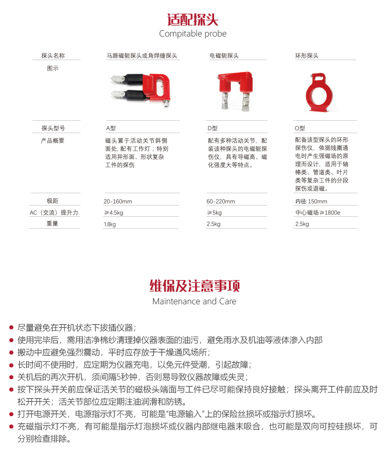 ?按下探頭開關前應保證活關節(jié)的磁極頭端面與工件已盡可能保持良好接觸;探頭離開工件前應及時松開開關;活關節(jié)部位應定期注油潤滑和防銹;