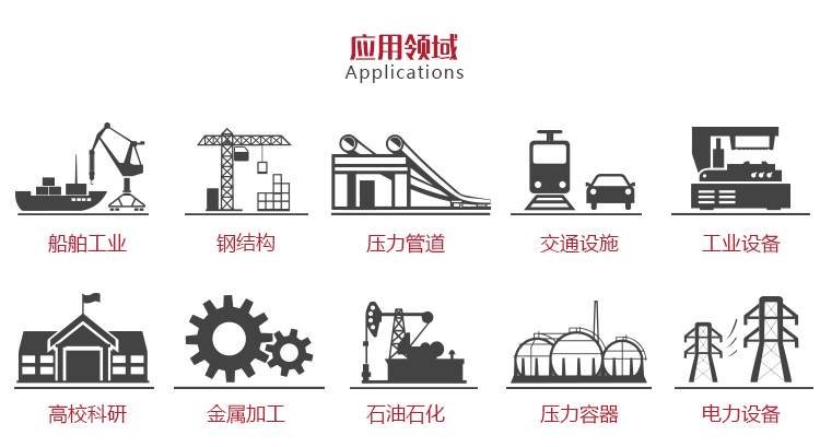 功能用途本儀器能夠廣泛地應用在制造業、鋼鐵冶金業、金屬加工業、化工業等需要缺陷檢測和質量控制的領域,也廣泛應用于航空航天、鐵路交通、鍋爐壓力容器等領域的在役安全檢查與壽命評估。