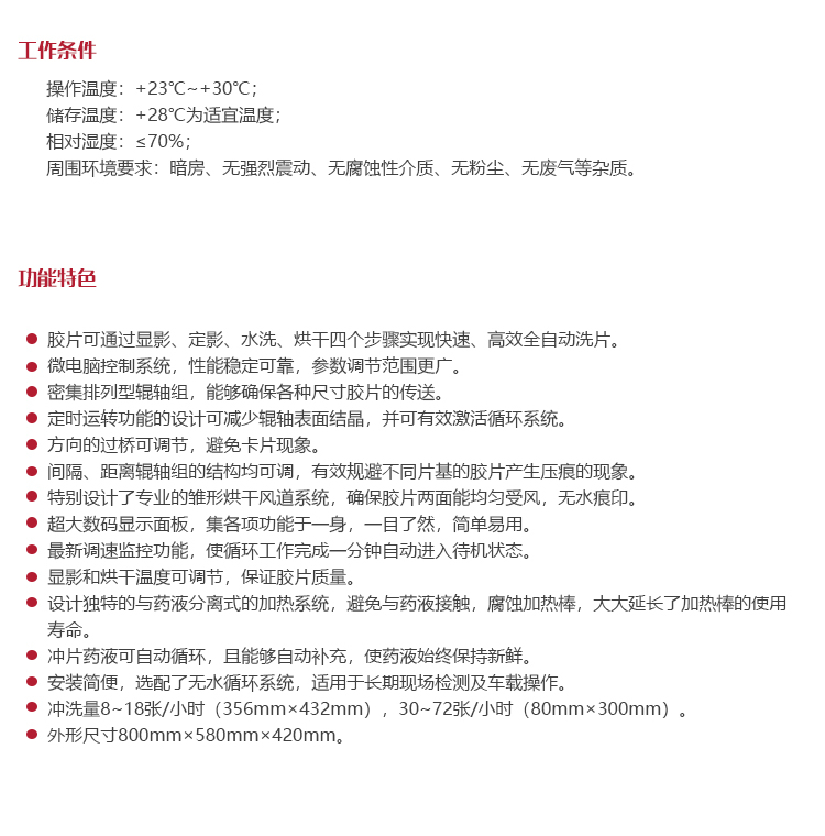 | 洗 片 量 | 8~18張/小時(356×432mm);30~72張/小時(80×300mm) |
