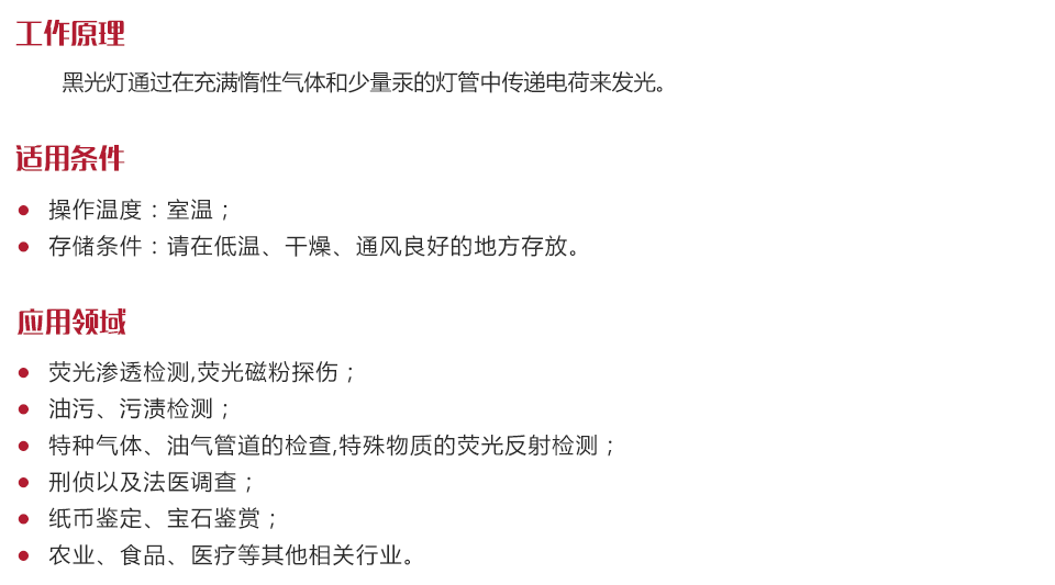| 黑光波長 | 室溫25℃ UVA360nm±3nm |