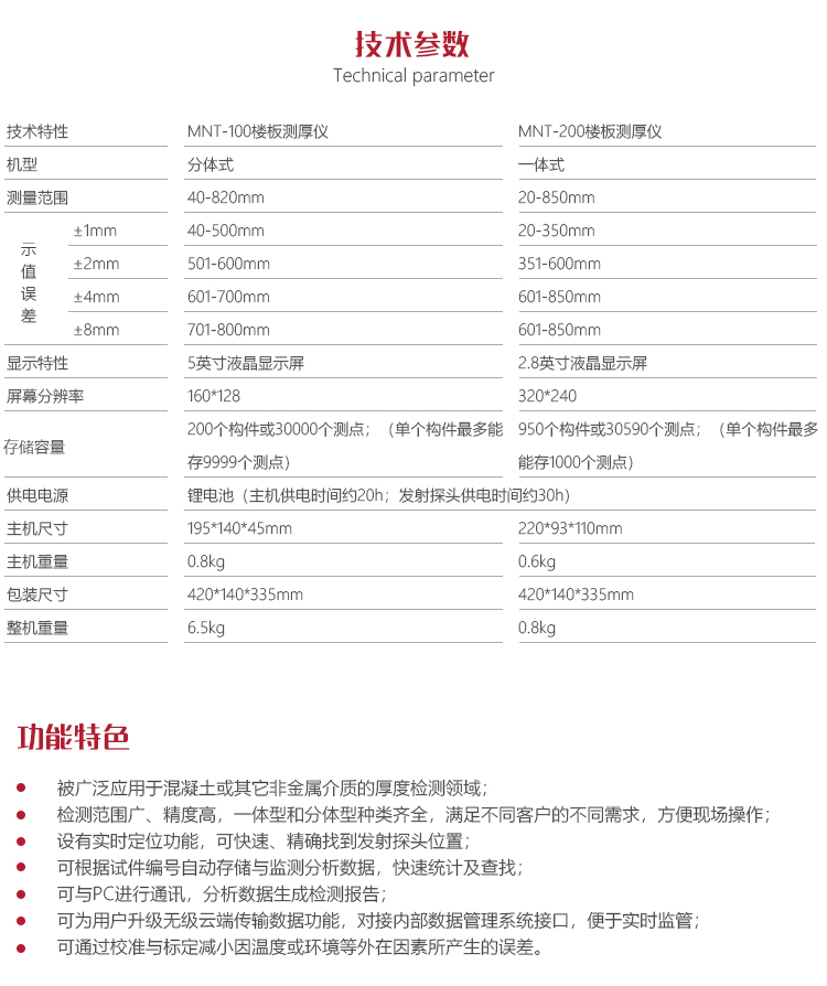 | 剖面測量功能 | MRT-100不支持;MRT-100+ 可支持圖形+數字顯示 |