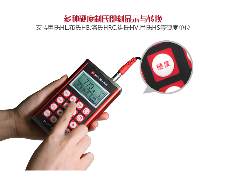 | 單位制式 | 里氏(HL)、布氏(HB)、洛氏B(HRB)、洛氏C(HRC)、洛氏A(HRA)、維氏(HV)、肖氏(HS) |