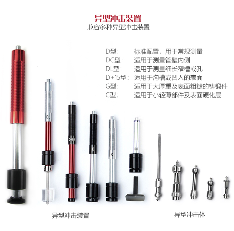 工作原理用規定質量的沖擊體在彈力作用下,以一定速度沖擊試樣表面,用沖頭在距試樣表面1mm處的回彈速度與沖擊速度的比值計算硬度值。計算公式如下: